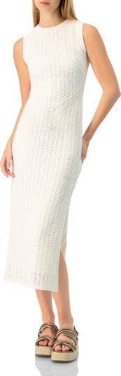Elegant long dress featuring a ribbed neckline and armpits, and side slit for added style.