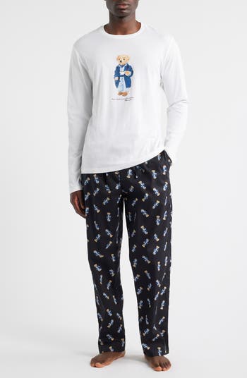 Hibernate in style with a cotton pajama set that serves pure bear-hug energy, combining a graphic T-shirt with allover bear‑print pants for nights that feel as good as they look.