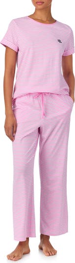 An embroidered monogram and horizontal stripes keep the look timeless on these cotton-blend pajamas that beckon you to bed.