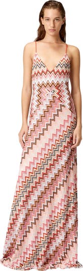 Long Patchwork Dress With Zig Zag Pattern And Crossed Straps
