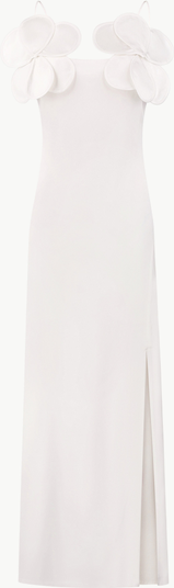 This sheath gown combines a long, lean silhouette with delicate straps and floral appliques for a more dimensional finish. The clean line keeps the shape elegant, while the handcrafted embellishment draws soft attention to the body without overwhelming it. In ivory, it feels especially refined for a formal dinner or evening event with minimal styling. Its restraint is what makes it so flattering, refined, and memorable.