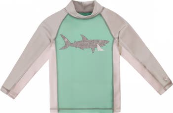 With sporty side panels and raglan cut sleeves for increased mobility, this boy's long sleeve UPF 50+ swim shirt sure to keep your little man covered, comfortable, and stylish on any and all adventures out under the sun.