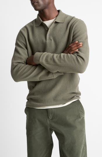 Cut from a basketweave cotton knit, this long-sleeve polo brings subtle, refine texture that won't overwhelm you laid-back weekend look.