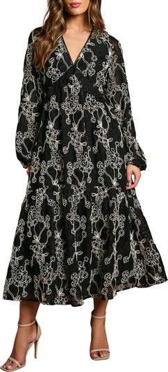 Exquisite broderie floral pattern throughout creates a sophisticated visual texture. Elegant v-neckline frames the dã©colletage beautifully. Flowing midaxi length offers a graceful silhouette. Voluminous long sleeves add dramatic flair to this occasion piece. Fully lined for comfort and a perfect drape. This stunning coast broderie floral midaxi dress combines timeless elegance with contemporary design.