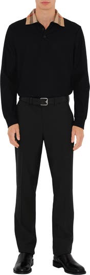 A long-sleeved polo shirt in cotton piqué, topped with a knitted Burberry Check collar. The design is cut to a slim fit.||Button placket|Rib-knit cuffs