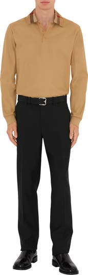 A long-sleeved polo shirt in cotton piqué, topped with a knitted Burberry Check collar. The design is cut to a slim fit. ||Button placket|Rib-knit cuffs