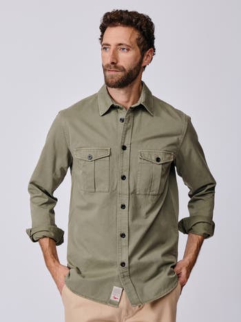 The Cole comes straight out of Aubin's vintage archive. Celebrating the charm and timeless style of a well-worn work shirt. Cut from a densely woven cotton twill that's been garment dyed and heavily washed down for an authentic hand feel. Finished off with twin flap pockets on the chest. Can be worn with a t-shirt underneath as well as by itself.
