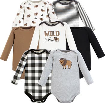 Hudson Baby long-sleeve bodysuits are an essential part of baby's wardrobe. Our bodysuits feature adorable prints, embroideries, stripes and solids and provide a comfortable base layer that's great for pairing with pants, shorts, or even wearing under outfits. Our bodysuits are comfortable and cozy for all-day, everyday wear for your little one.