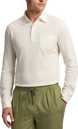 Long Sleeve Cotton & Cashmere Piqué Pocket Polo
