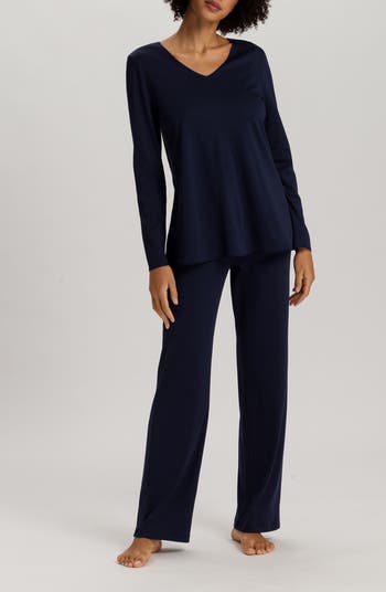 Tuck in for a wonderfully comfortable slumber in these relaxed pajamas made from soft mercerized cotton and finished with tonal silk-satin trim.