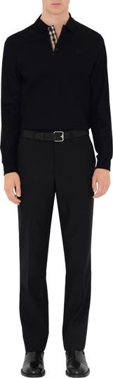 A long-sleeved polo shirt in cotton piqué, embroidered with a tonal Equestrian Knight Design. The style is cut to a slim fit and lined with Burberry Check at the placket.||Button placket|Rib-knit trims|Stepped hem|Embroidered Equestrian Knight Design at chest
