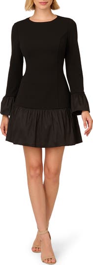 Soft crepe and festive taffeta combine in a party-perfect mini that's easy to style up or down.