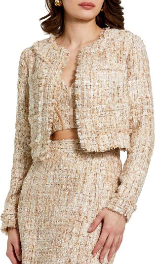 Elevate your wardrobe with our Long Sleeve Cropped Boucle Jacket. Crafted from plush bouclé fabric, its stylish design enhances any outfit, perfect for casual or formal wear.