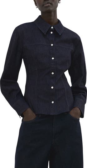 Long Sleeve Denim Shirt with Seams