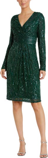 Long Sleeve Embellished Sequin Cocktail Dress