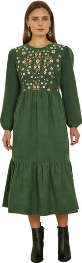 Long Sleeve Embroidered Midi Dress