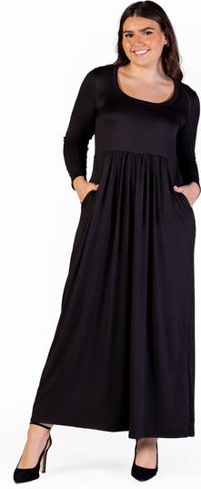 Long Sleeve Empire Waist Pocket Maxi Dress