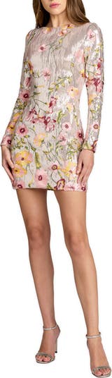 Long Sleeve Floral Embroidered Sequin Mini Dress