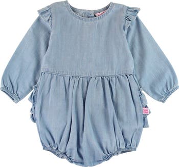 Knit Long Sleeve Flutter Bubble Romper, designed exclusively for girls, combines style with comfort. This long sleeve romper for girls features enchanting flutter sleeves and signature rear ruffles that add a touch of whimsy to any outfit. The flutter bubble romper's keyhole closure at the back with a secure button ensures a perfect fit, while snaps at the bottom make changing hassle-free. Crafted in a soft, stretchy knit, this romper is designed to maintain its color and texture, resisting fading and snagging even after multiple washes. The full seat coverage and ruffle detail not only enhance its aesthetic appeal but also provide added comfort. Perfectly pairing with accessories in White, Gray, Navy, or Gold, this romper ensures your little girl looks stylish and feels comfortable all day long. Whether it’s a playdate or a casual family outing, this girls romper with snaps is an excellent choice for easy changing and enduring cuteness.