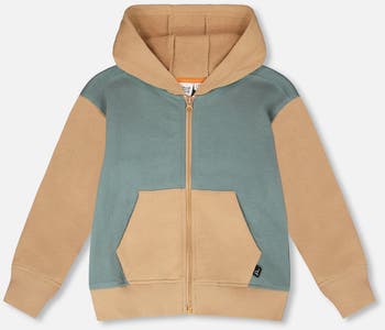 The hooded French terry cardigan is a comfy layering piece for adventurous boys. Made from a soft cotton French terry fabric, this hoodie features long sleeves, a cozy hood, ribbed trims, and a full-length zipper for easy wear. Front pouch pockets add both function and fun, making it perfect for days spent exploring in style as part of the "Trail Buddies" collection.