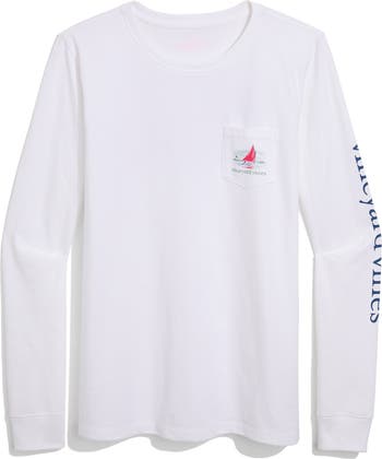 Colorful sails brighten the chest pocket and back of this long-sleeve graphic T-shirt cut from comfortable cotton.