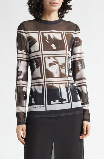 Make a style statement in this long-sleeve T-shirt boasting a bold pattern of black-and-white photos.