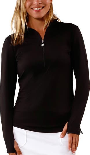 A pullover that is versatile, durable, and fashionable, this Ruched Half Zip Sun Shirt is a must have for any and all activities under the sun.
