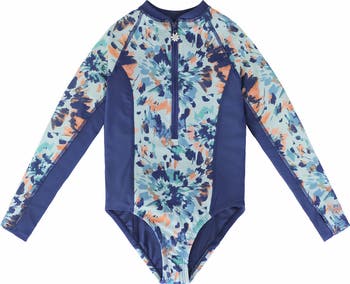 Keep your little girl sunburn-free and stylish with our UPF 50+ long-sleeve half zip swimsuit, made from buttery soft, quick-drying, 4-way stretch fabric that’s perfect for active beach days.