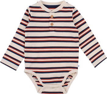Baby will spend the day looking polished while crawling in the comfort of this henley-style bodysuit cut from stretchy cotton.