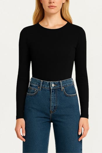 This sleek, long-sleeve bodysuit is a closet essential, crafted from soft stretch jersey for a second-skin feel. Featuring a clean mock neck and streamlined silhouette, it fits close to the body with a brief bottom and snap-closure gusset for all-day ease. The minimalist design and unlined finish make it perfect for layering under tailored pieces or styling solo with high-waisted denim.