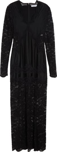 A gorgeous garden of romantic lace set against opaque jersey conceals and reveals to alluring effect across this curve-contouring gown, capturing the interplay between protection and exposure—a continued thread in Julien Dossena's designs.