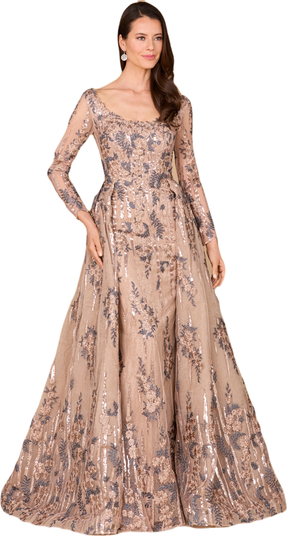 Long Sleeve Lace Gown with Overskirt