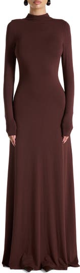 Sleek and stretchy, this curve-hugging maxi dress flares out at the skirt creating subtle drama.