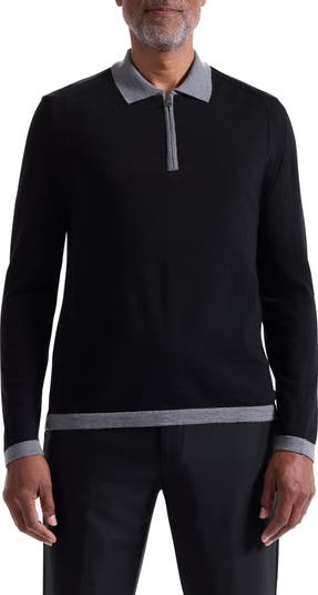 Knit from extrafine merino wool, this long-sleeve, quarter-zip polo-sweater brings easy sophistication to your wardrobe. The solid contrast rib collar, cuffs, hem and zipper placket add a refined touch, while the soft, breathable knit ensures lasting comfort.