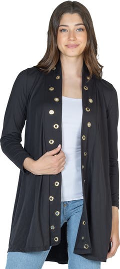 Long Sleeve Mid Thigh Open Front Cardigan with Grommet Details