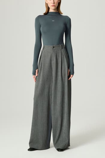 This sleek, long-sleeve bodysuit is a closet essential, crafted from soft stretch jersey for a second-skin feel. Featuring a clean mock neck and streamlined silhouette, it fits close to the body with a brief bottom and snap-closure gusset for all-day ease. The minimalist design and unlined finish make it perfect for layering under tailored pieces or styling solo with high-waisted denim.