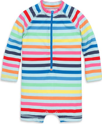 Get baby ready for some fun in the sun with this rashguard swimsuit featuring long sleeves and UPF 50+ sun protection so your kiddo stays safe under the rays.