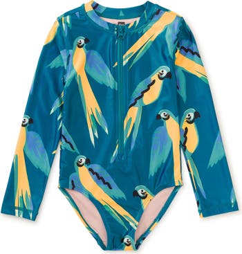 Dive into sunny adventures with this long-sleeve one-piece swimsuit, designed for both style and protection. Featuring UPF 50+ for ultimate sun safety, it's crafted with a fitted bodice, crew neckline, and a zipper closure with a protective interior guard for added comfort. Fully lined (except for the sleeves) and made from a stretchy polyester/spandex blend, it's perfect for splashing, swimming, and everything in between.