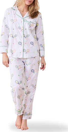 Available in an assortment of playful prints, these comfy organic-cotton pajamas pair a long-sleeve button-up top with relaxed pants.