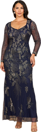 Step into the spotlight with this sparkling long gown featuring a regal Queen Anne neckline and delicate beadwork. Perfect for special events, it combines elegance with a touch of playful charm, making you feel like the queen of the night.