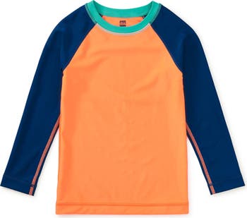 Designed for sunny days and nonstop play, this Long Sleeve Rash Guard offers UPF 50+ sun protection with a lightweight, athletic feel. A bold color-block design adds a sporty look to a fitted silhouette with short raglan sleeves that allow for easy movement and help cut down on messy sunscreen during busy swim days. Crafted with recycled materials and lined at the front bodice for added comfort, it's made to be worn often and enjoyed all season long. Pair with our swim trunks or bikini bottoms for easy, mix-and-match coverage.