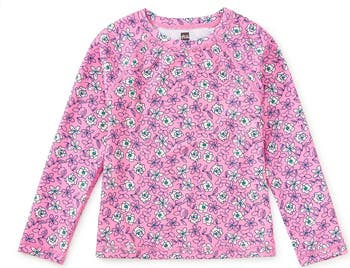 Designed for sunny days and long hours in and out of the water, this Long Sleeve Rash Guard offers UPF 50+ sun protection with comfortable, athletic coverage. Thoughtfully crafted with recycled materials, it helps cut down on messy sunscreen during busy swim days. A fitted silhouette with long raglan sleeves and a lined front bodice allows for easy movement and dependable comfort. Finished with an artist-designed print created in-house, it adds color and personality to a swim essential built for active play. Follow our care instructions to help keep it looking its best swim after swim. Pairs easily with our full range of bikini bottom options.