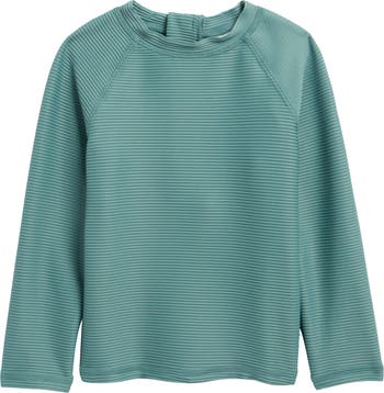 Stretchy, UV-blocking fabric extends baby's fun in the sun and surf in a long-sleeve ribbed rashguard that dries quickly for on-land comfort.