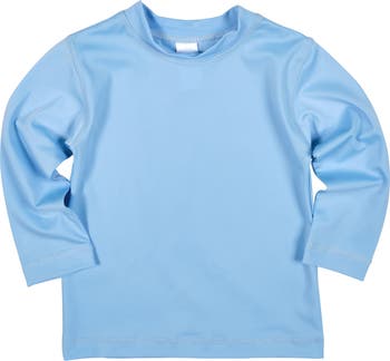 Designed for fun in the sun, this classic blue long sleeve rashguard offers both comfort and protection. Crafted from soft, durable tricot with UPF 50 sun protection, it helps shield delicate skin during long days at the beach or pool. The blend of nylon and spandex provides gentle stretch for easy movement, while blue stitching adds a polished finish. Perfect for pairing with coordinating swim trunks. A sun-smart essential made for splashing, exploring, and seaside adventures.