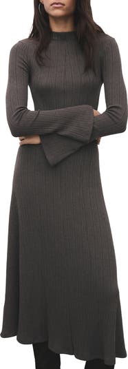 Shaped with flared princess seams, this flowy midi dress is cut from a stretchy variegated rib and fashioned with exaggerated bell cuffs.