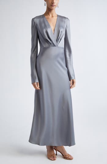 Long Sleeve Satin V-Neck Dress