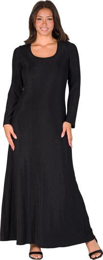 Long Sleeve Scoop Neck Shimmery Fabric Maxi Dress