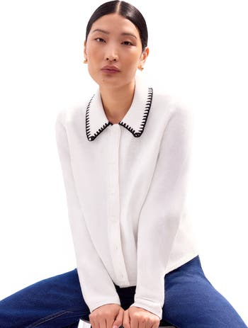 Stay warm and stylish in our Contrast Stitch Cardigan. This soft versatile piece adds a modern edge to any outfit. Crafted from a soft and cozy knit fabric, the cardigan features a classic black base colour, accented with bold white contrast stitching along the collar. Designed with an open front, allowing for effortless styling this cardigan is perfect for transitioning between seasons, offering warmth without sacrificing style.