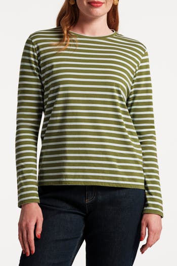 Long Sleeve Striped Tee Shirt Stripe 100% Pima Cotton