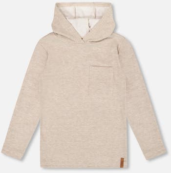 In brushed jersey fabric with an attached hood, this versatile shirt is a must-have in every boy's wardrobe. Soft and stretchy in a poly/rayon jersey blend, this pullover features long sleeves, a curved back hem that makes it perfect for tucking or untucking, and a single patch pocket on the chest.